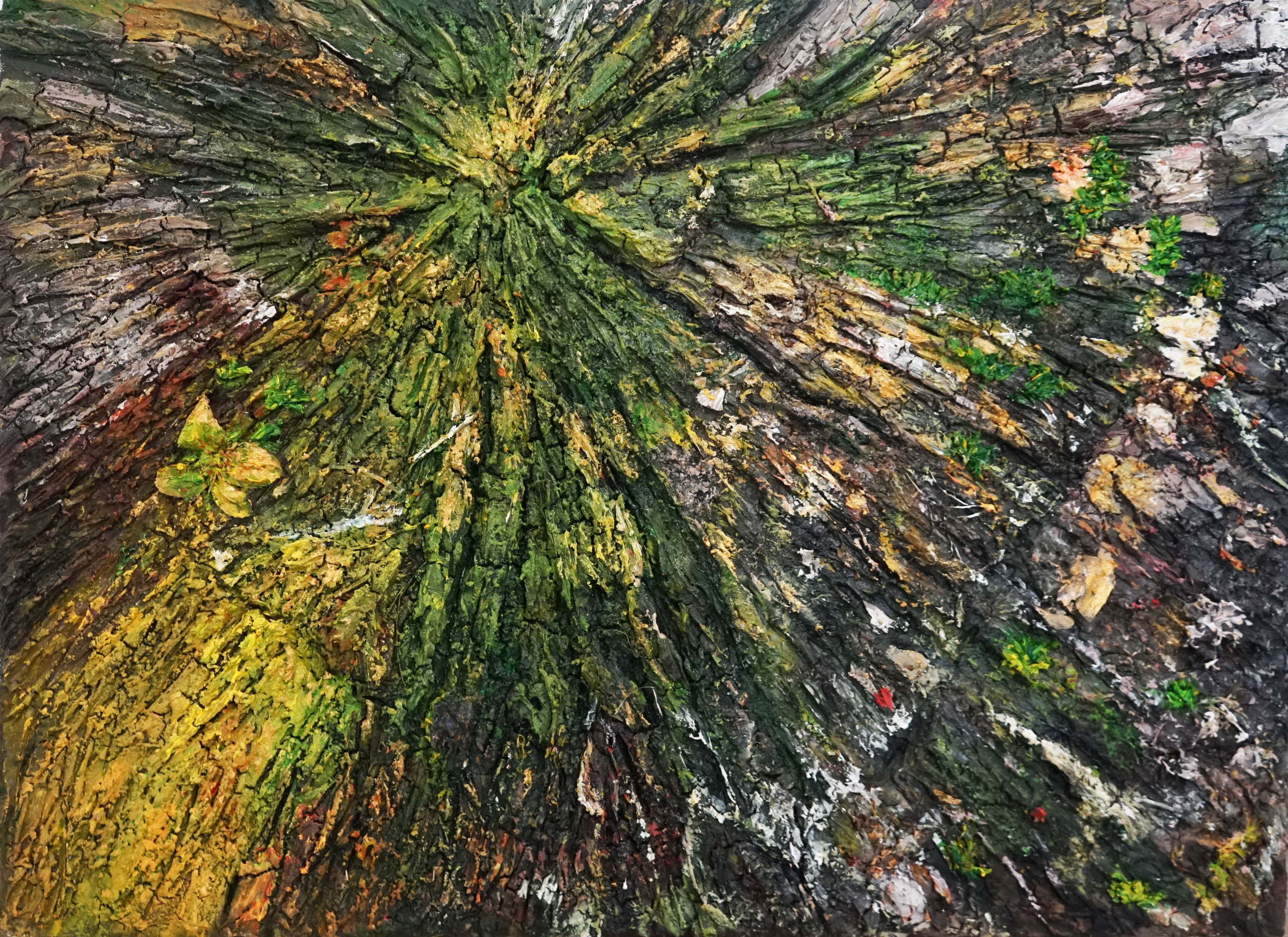 Oil, Acrylic, Dried Leaves, Sand on canvas